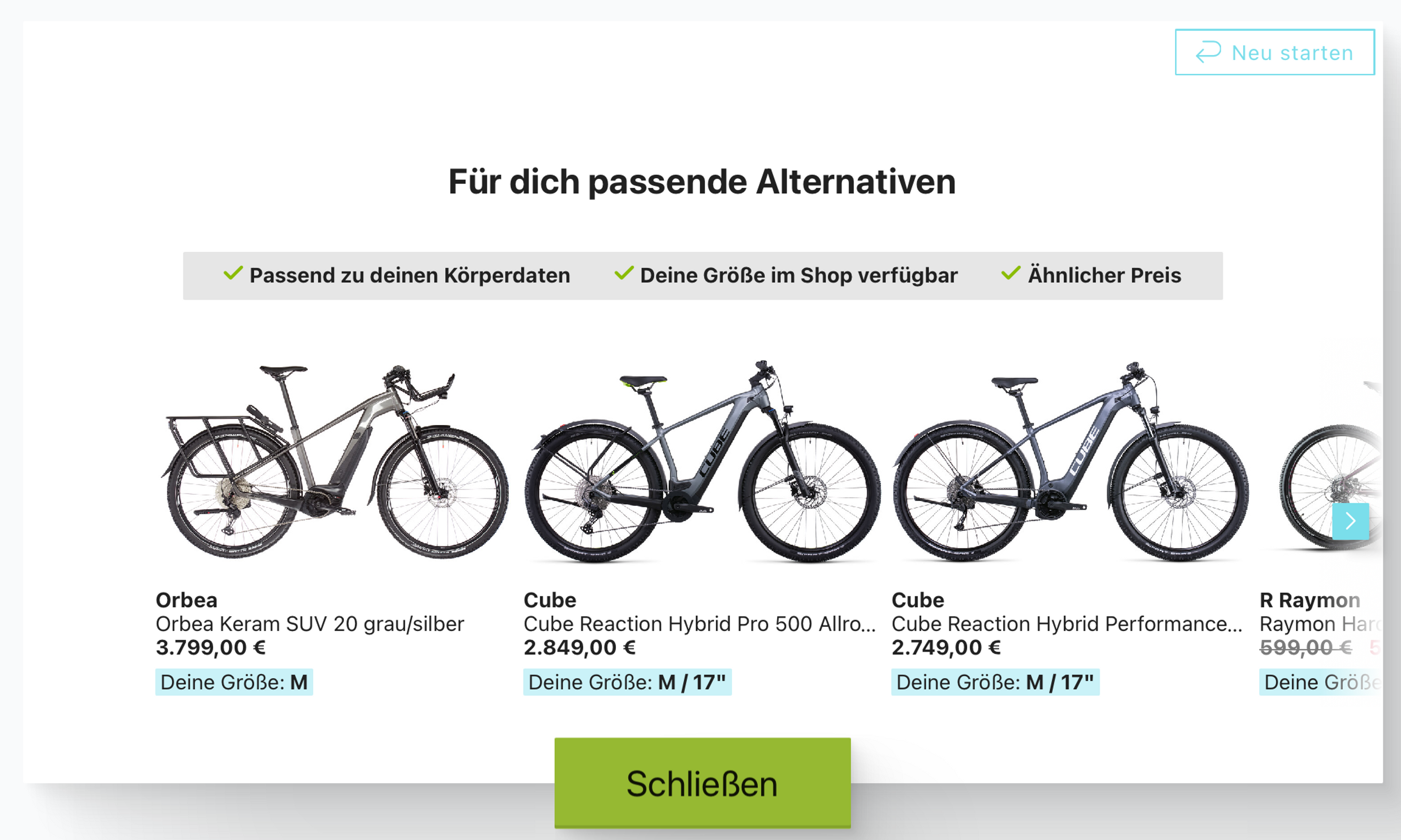 Die Smartfit Bike Datenbank mit über 100 Marken und 200.000 aktualisierten Modellen pro Jahr enthält Geometriedaten für wirklich jeden Radtyp. Vom Kinderrad bis zum Down-Hill-Bike - und natürlich auch alles, was einen E-Motor hat, wird auf Basis des einzelnen Modells berechnet.