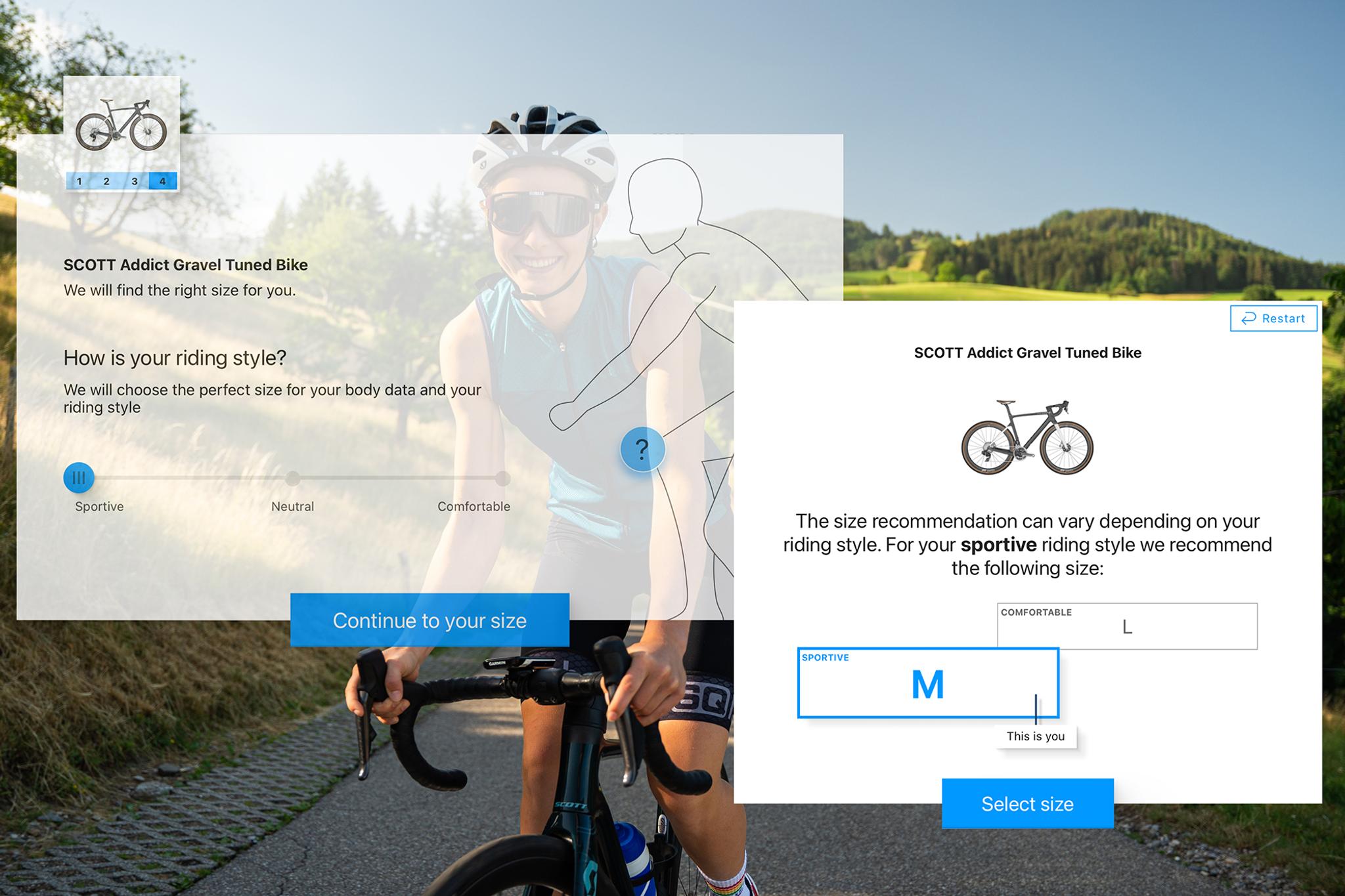 From now on, the algorithm also includes the riding style preference for the individual recommendation of the appropriate frame size. our solution thus helps especially when between two frame sizes are recommended for a specific bike model with one's own body data. The calculation of the optimal frame size at Smartfit is already based on 40 individual body and bicycle geometry factors and is now enriched by the factor of riding style preference.
